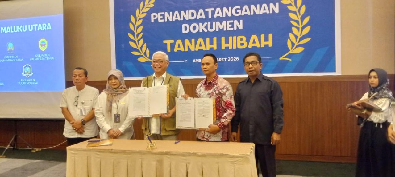 Pemerintah Kabupaten Halmahera Timur (Haltim) resmi menandatangani Naskah Perjanjian Hibah Daerah (NPHD) dan Berita Acara Serah Terima (BAST) lahan kepada Perum BULOG, dalam sebuah seremoni yang berlangsung di Ballroom Lantai 5 Hotel Santika Premiere Ambon, Rabu (04/03/2026).