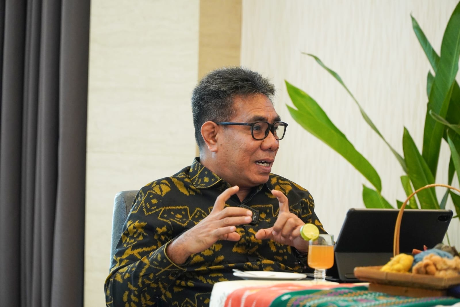 Wakil Wali Kota Tidore Kepulauan Ahmad Laiman tampil mempromosikan kekayaan daerahnya dalam podcast Discover National Treasure Tidore-Ternate yang digelar di Executive Lounge, Hotel Borobudur Jakarta, Selasa (21/4/2026).