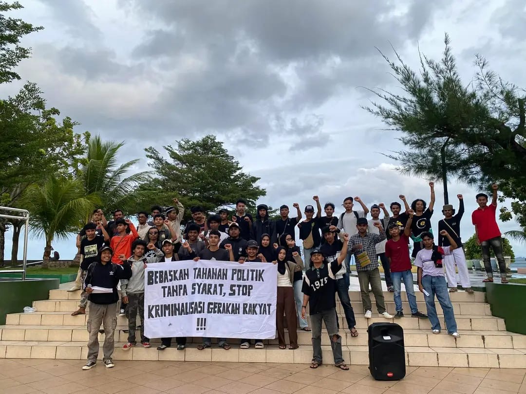 Dengan membawa spanduk bertuliskan “Bebaskan Tahanan Politik Tanpa Syarat dan Hentikan Kriminalisasi Gerakan Rakyat”, massa aksi menyampaikan berbagai tuntutan yang tidak hanya menyoroti persoalan nasional, tetapi juga sejumlah isu strategis di Maluku Utara.